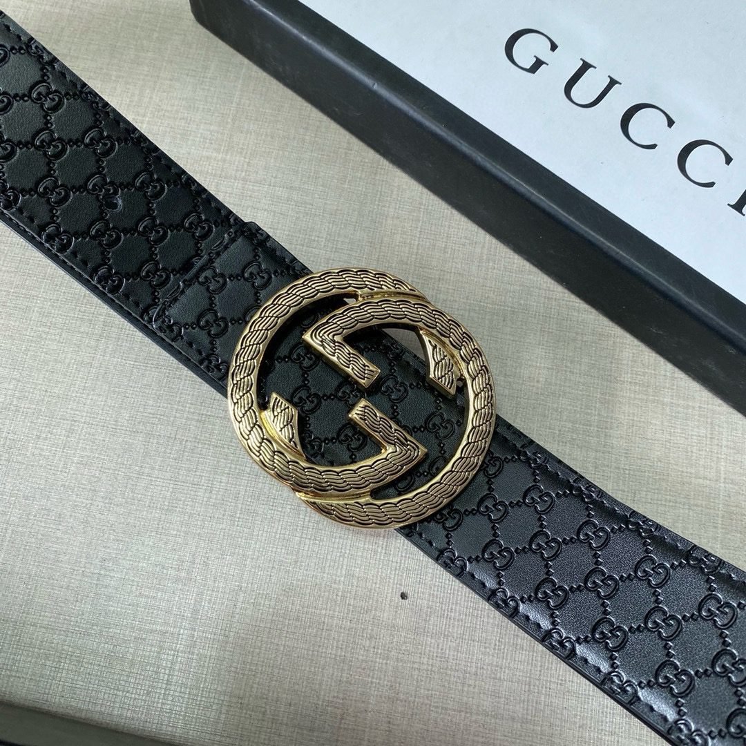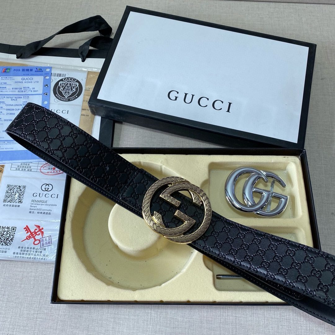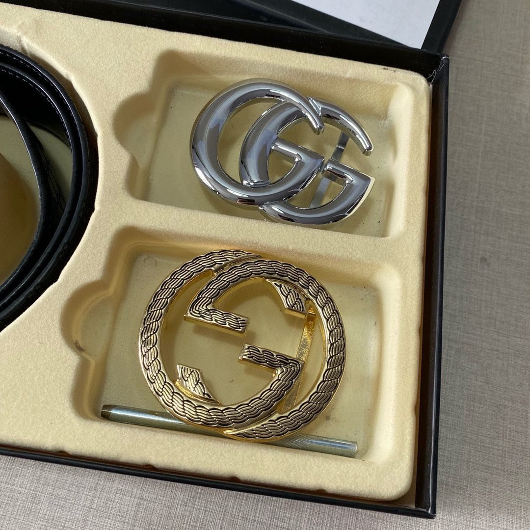 The Gucci two-button gift box set combines elegance and luxury. It is made of fine black leather, which is delicate and elastic to the touch, showing an unparalleled texture. It is paired with a metal buckle to highlight your nobility and taste, making you stand out from the crowd. The set also includes two buckles of different sizes to meet the needs of different occasions.