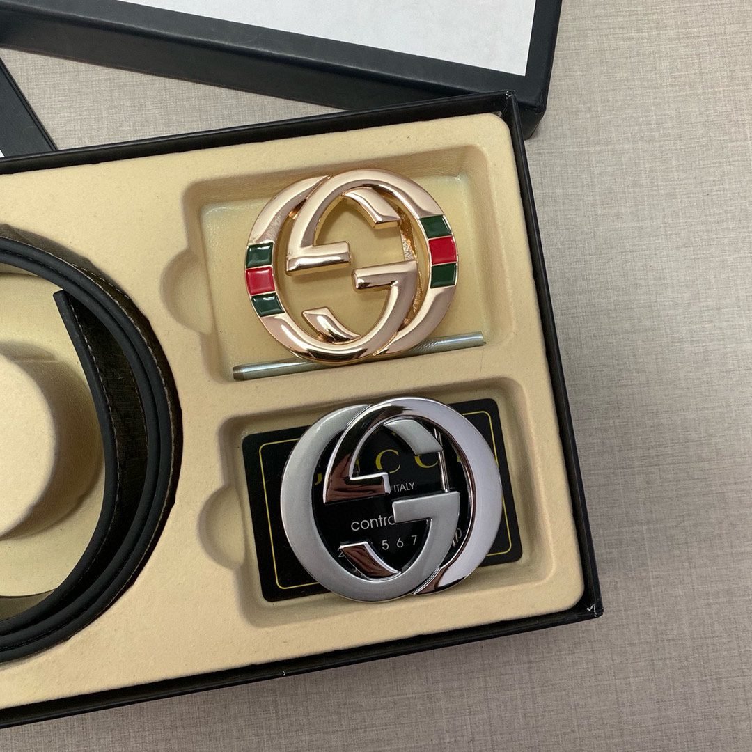 The Gucci double-button gift box set, with its unique black tone and exquisite craftsmanship belt, shows unparalleled elegance and nobility. Made of top-grade leather material, it is soft and elastic to the touch, and is wear-resistant and durable to ensure that it remains as shiny as new after long-term use. The gift box is equipped with two different buckles, centered on the unique double G logo, highlighting the unique charm of the Gucci brand. The entire belt design is simple yet luxurious, perfectly interpreting Gucci’s fashion concept.