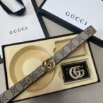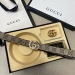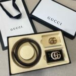 The Gucci double-button gift box set combines elegance and sophistication, highlighting your noble taste. The set includes a selection of brown leather belts, all carefully crafted from high-quality materials. The belt is soft to the touch and has a natural color, highlighting a man’s maturity and stability. The suit includes two uniquely designed buckles that can be matched as desired to show different style charms.