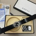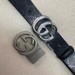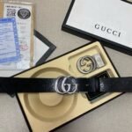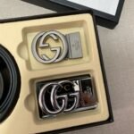 This Gucci two-button gift box set has become a leader in the fashion industry with its unique design and excellent quality. Made of high-quality genuine leather and processed with exquisite craftsmanship, it presents a deep and lustrous black tone. The double-button design is simple yet luxurious, highlighting the unique charm of the Gucci brand. The box comes with two different buckles. The belt has smooth lines and soft texture, giving you the ultimate comfortable wearing experience.