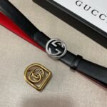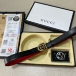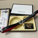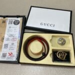 The Gucci double-button gift box set is made of high-quality leather material with a delicate touch, showing the ultimate texture and luxury. The belt buckle adopts the brand’s iconic double G design, which is simple yet elegant, highlighting the wearer’s unique taste. In addition, the box is equipped with two different buckles to meet your dressing needs for different occasions.