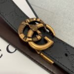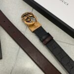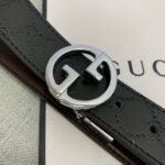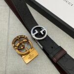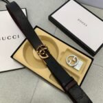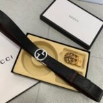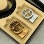 Gucci two-button gift box set combines elegance and luxury. Selected from the finest black leather, it feels delicate and elastic, presenting an unparalleled texture. Pair it with a metal buckle to show your dignity and taste, making you stand out from the crowd. The suit also contains two buckles of different sizes, which can be freely adjusted according to the waistline to meet the dressing needs of different occasions.