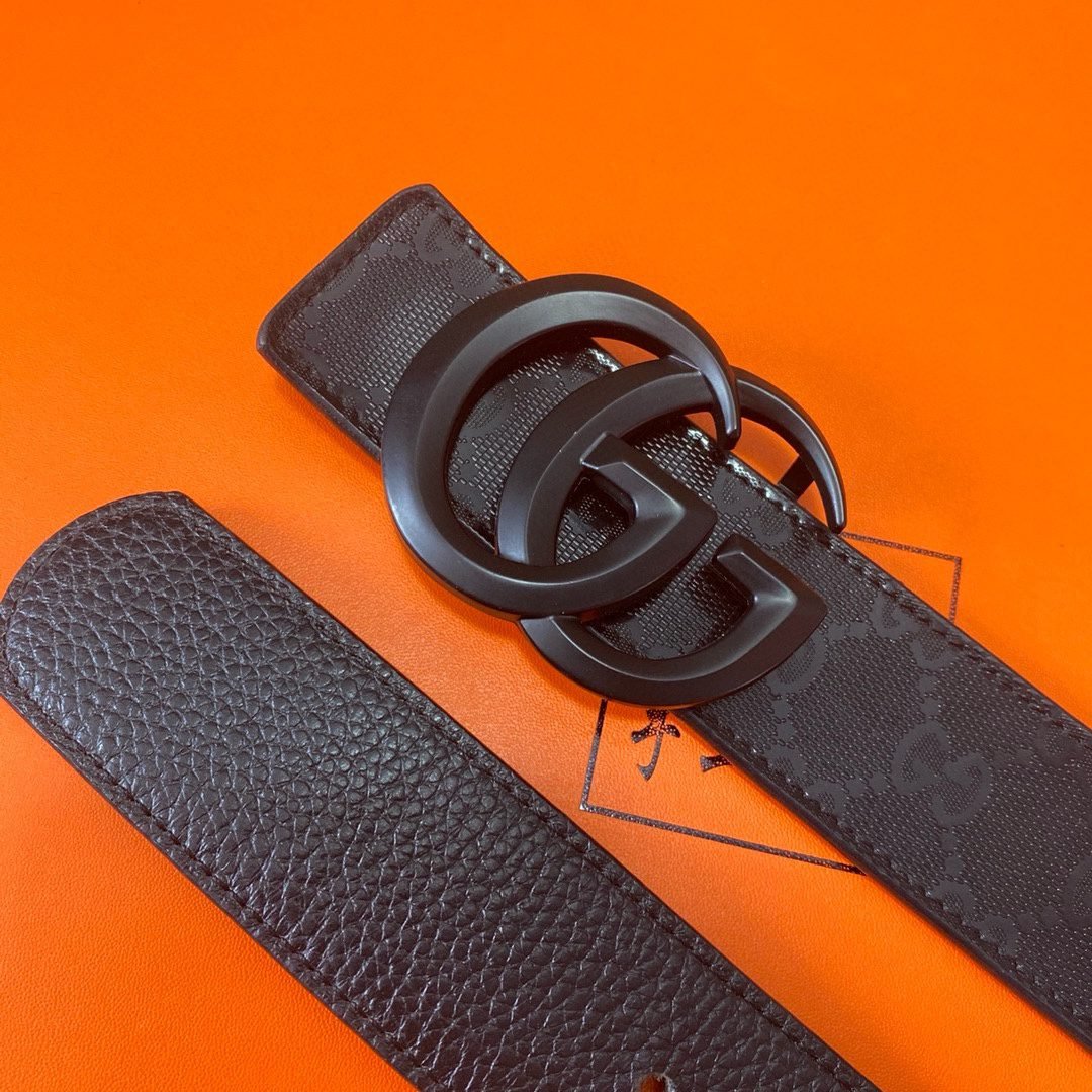 Gucci two-button gift box set combines elegance and luxury. Selected from the finest black leather, it feels delicate and elastic, presenting an unparalleled texture. Pair it with a metal buckle to show your dignity and taste, making you stand out from the crowd. The suit also contains two buckles of different sizes, which can be freely adjusted according to the waistline to meet the dressing needs of different occasions.