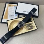 Gucci classic double G buckle black textured belt, simple and elegant, noble and luxurious $210.00 Original price was: $210.00.$66.69Current price is: $66.69.