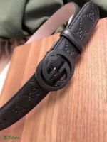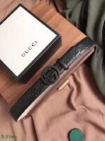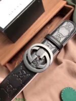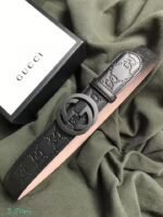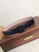 GUCCI Double G black buckle texture belt, with its unique design and excellent quality, has become a bright choice in the men’s fashion industry. The belt is made of high-quality leather, which is soft and comfortable to the touch, wear-resistant and durable. The black double G buckle design is classic yet fashionable, highlighting the unique charm of the brand. The belt is engraved with the exquisite word “GUCCI”, showing the brand’s exquisite craftsmanship and excellent quality.