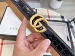 This GUCCI Double G black belt has a simple yet elegant design, highlighting the noble temperament of the brand. The belt is made of high-quality materials, soft and comfortable to the touch, and durable. The metal Double G buckle is the main component of this belt. The iconic design is unique and eye-catching, showing the brand’s exquisite craftsmanship and unique style.