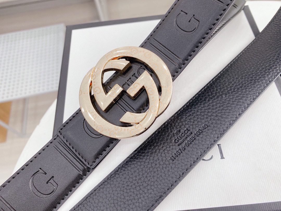 Gucci double G buckle black texture fashion belt, a perfect combination of classic and modern. Selected high-quality black leather, soft and delicate to the touch, natural and lasting luster. The unique double G buckle design is made of high-quality metal material, with dazzling luster, showing extraordinary quality. Every detail has been carefully polished to present an unparalleled sense of refinement.