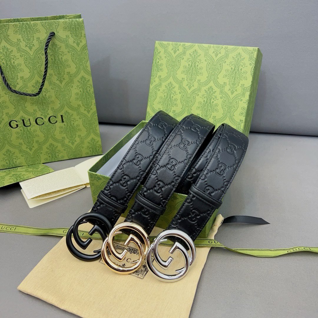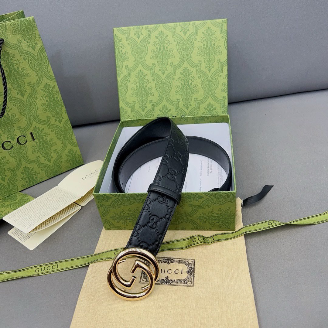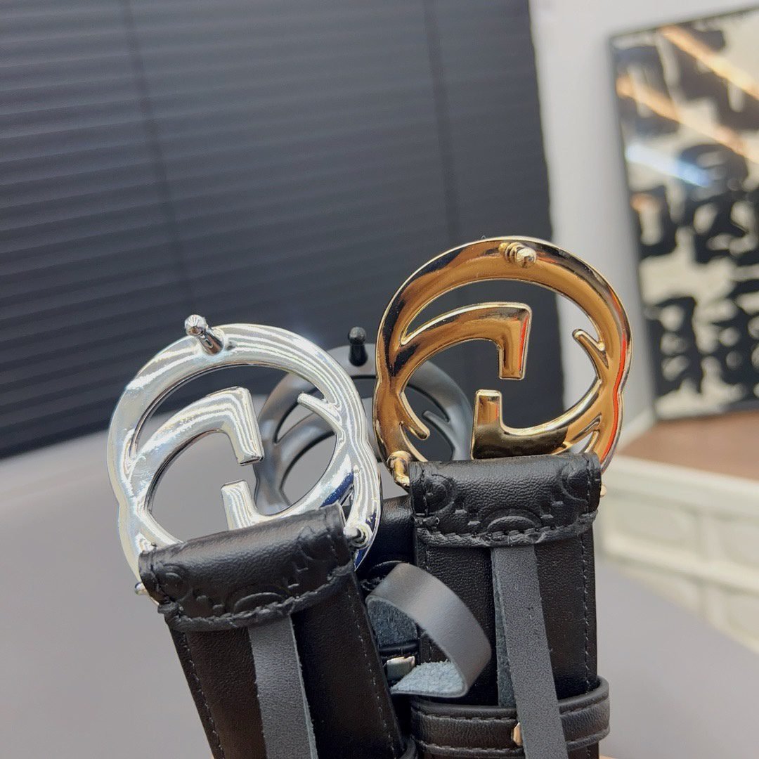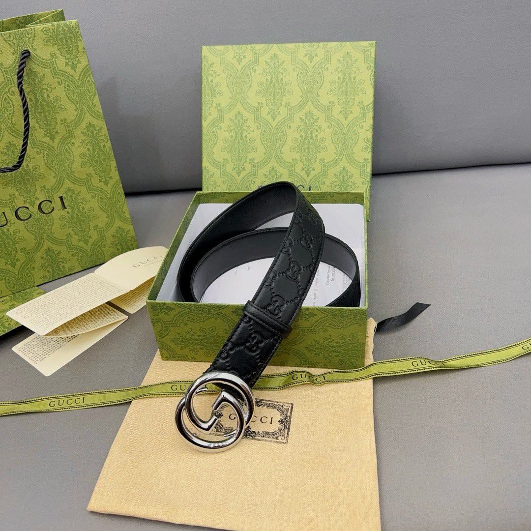 Home Belt GUCCI Belt Gucci double G buckle black textured belt, simple and elegant, exquisite and luxurious