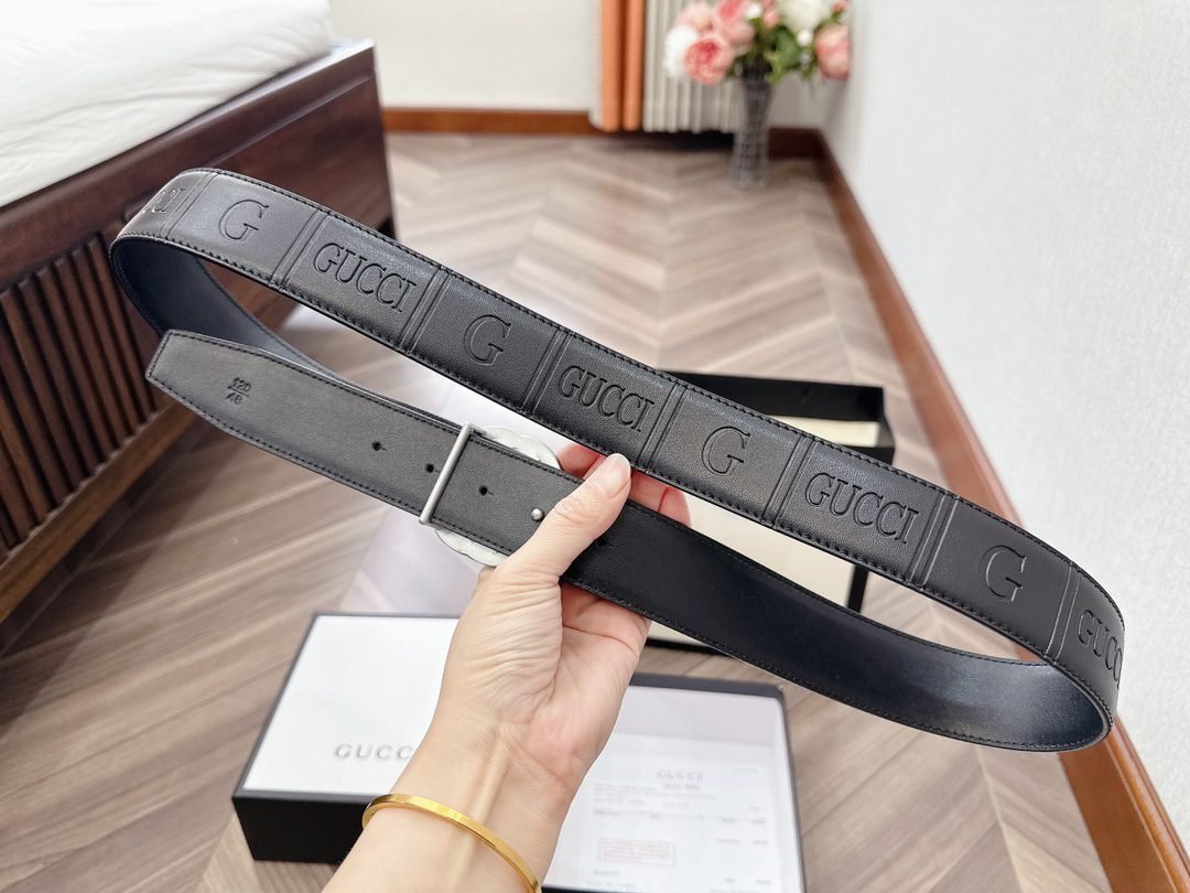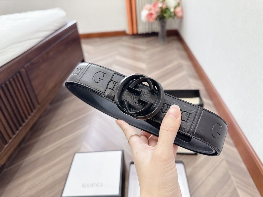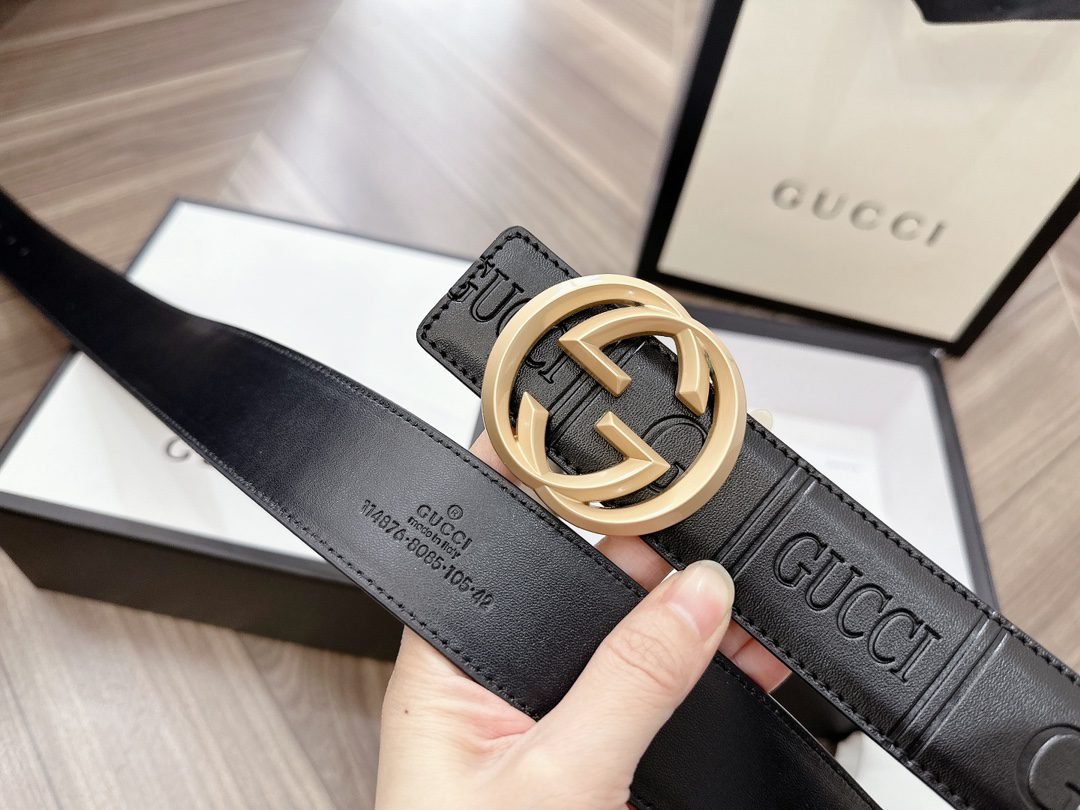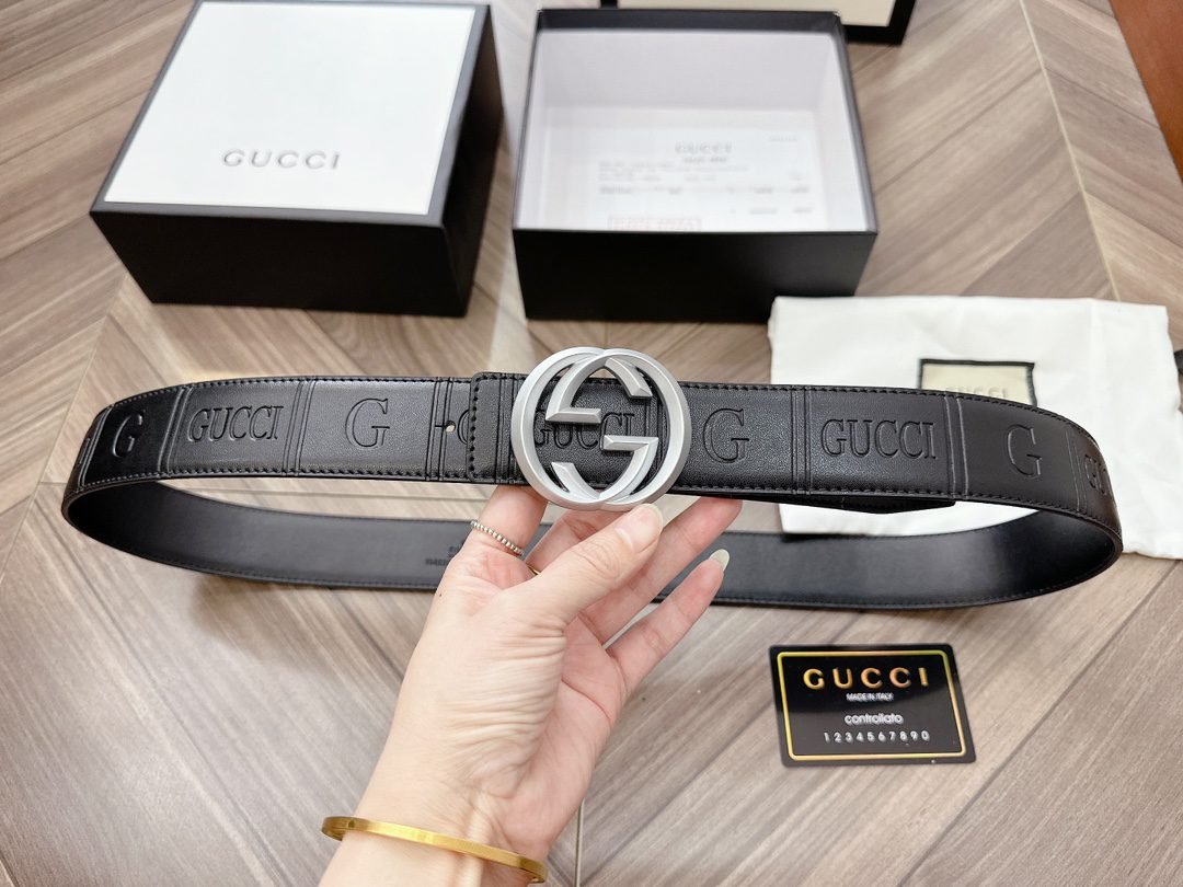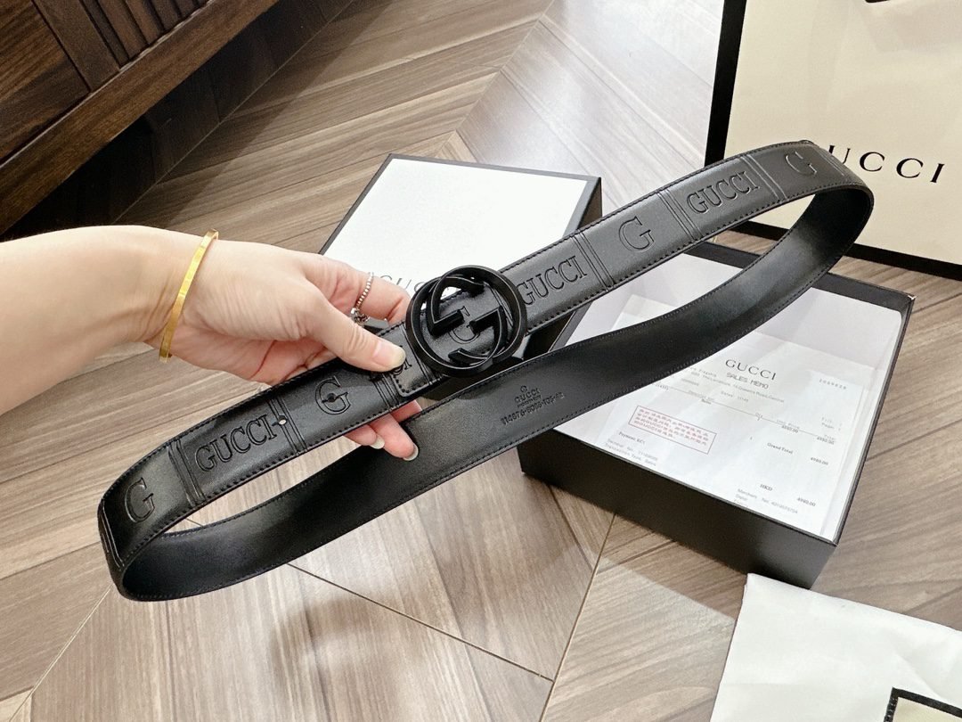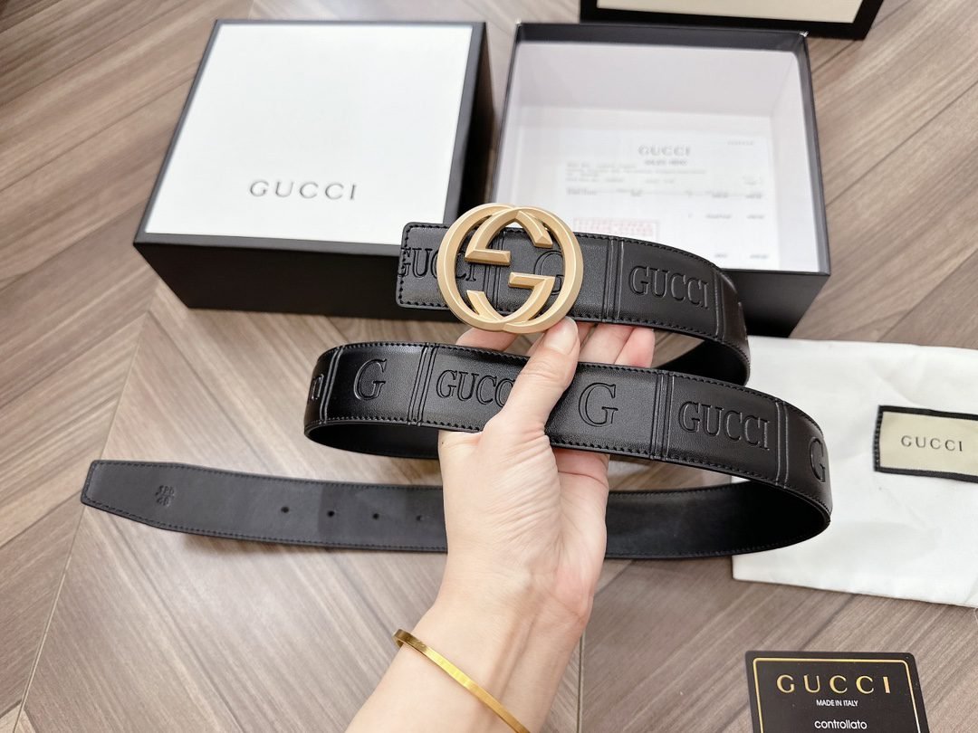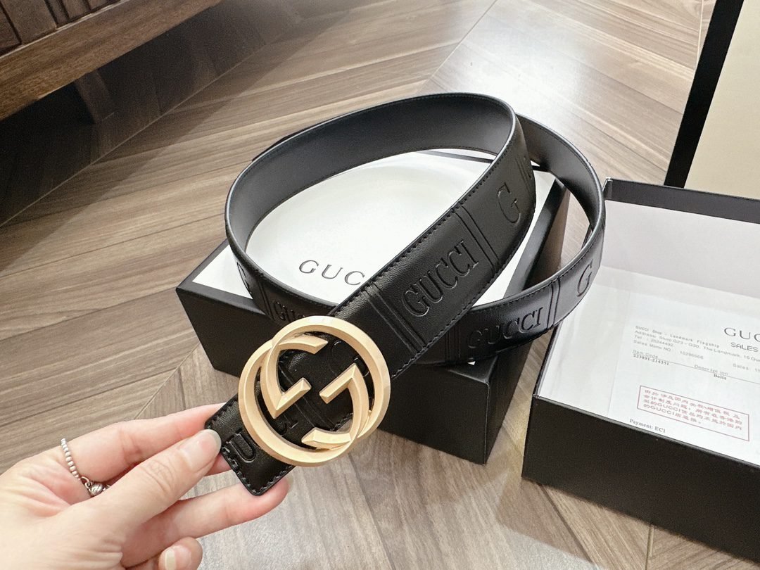 This GUCCI Double G black textured belt has become the darling of the fashion industry with its unique charm. The belt is made of high-quality leather material, which has been carefully polished and textured to give it a unique texture and luster. The capital letter “G” logo on the belt, as well as the brand name “GUCCI”, highlight the nobility and quality of the brand.