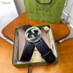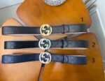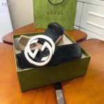 This Gucci double G buckle black textured belt has become an evergreen choice in the fashion industry with its simple yet stylish design. The belt is made of high-quality black leather, which has a delicate touch and is durable, showing unparalleled texture and comfort. The metal buckle not only highlights the brand’s unique identity, but also adds a touch of luxury.