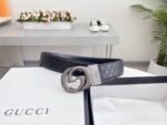The Gucci double G buckle black textured belt interprets the charm of luxury and fashion with its unique design style and excellent quality. The belt is made of top-grade black leather material, which is soft and delicate to the touch, wear-resistant and durable, showing an unparalleled texture and unique double The G logo buckle is made of exquisite metal tones and shines brightly, highlighting the nobility and elegance of the brand.