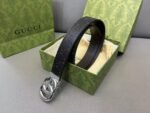 The Gucci double G buckle black textured belt highlights its nobility and extraordinaryness with its unique color matching. The belt is made of selected leather material, which has a delicate touch, wear resistance and durability. The buckle is made of high-quality metal, with long-lasting luster, durability, and highlights the brand’s charm. The overall design of the belt is simple yet elegant, perfectly interpreting the fusion of fashion and classics.
