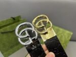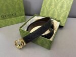 GUCCI gold double G buckle black textured belt, simple and elegant, low-key luxury $210.00 Original price was: $210.00.$66.69Current price is: $66.69.