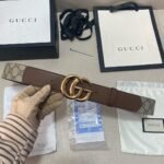 This GUCCI double G buckle brown and beige belt is suitable for men’s daily wear. Whether it is business or leisure occasions, it can add a touch of fashion and personality to the overall look. It can be easily matched with a variety of clothing such as suits and casual pants to enhance the taste and texture of the overall look.