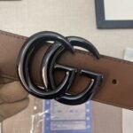 This GUCCI double G buckle brown and beige belt shows unparalleled fashion charm with its unique double G logo and exquisite craftsmanship. The belt is made of high-quality leather, which is soft and delicate to the touch while being durable. Highlight the high-end quality of the brand. The brown tone is classic and versatile, and can be easily matched with various clothing, showing men’s elegance and taste.