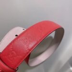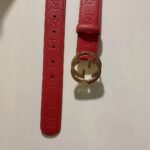 This Gucci double G buckle red textured belt has become a fashion must-have with its unique charm. The bright red belt is as warm and unrestrained as a flame, full of vitality and confidence. The exquisite metal G buckle is made of high-quality craftsmanship and shines brightly, highlighting the nobility and luxury of the brand. The belt material is soft and comfortable, not only wear-resistant and durable, but also brings you the ultimate wearing experience.