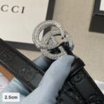 Gucci’s double G diamond-studded black belt, with its unique double G buckle design, demonstrates unparalleled luxury and taste. Inlaid with sparkling diamonds, it is as dazzling as the brightest stars in the night sky. The belt is made of high-quality leather, which is soft and delicate to the touch and durable. The exquisite edge pattern decoration adds a touch of elegance and fashion to the belt.