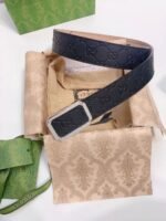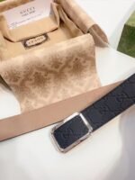 This Gucci double G logo classic men’s belt, with its unique design and exquisite craftsmanship, demonstrates unparalleled fashion and nobility. The belt is made of high-quality leather material, which is soft and delicate to the touch, wear-resistant and durable, and has good breathability and elasticity, bringing you a comfortable and unrestrained wearing experience. The buckle part is based on silver, and the double G logo is cleverly integrated, highlighting the unique charm of the brand. Every detail reflects the ultimate pursuit of quality.