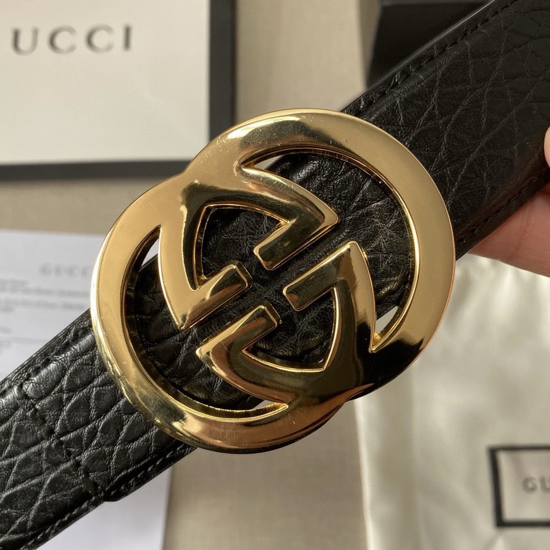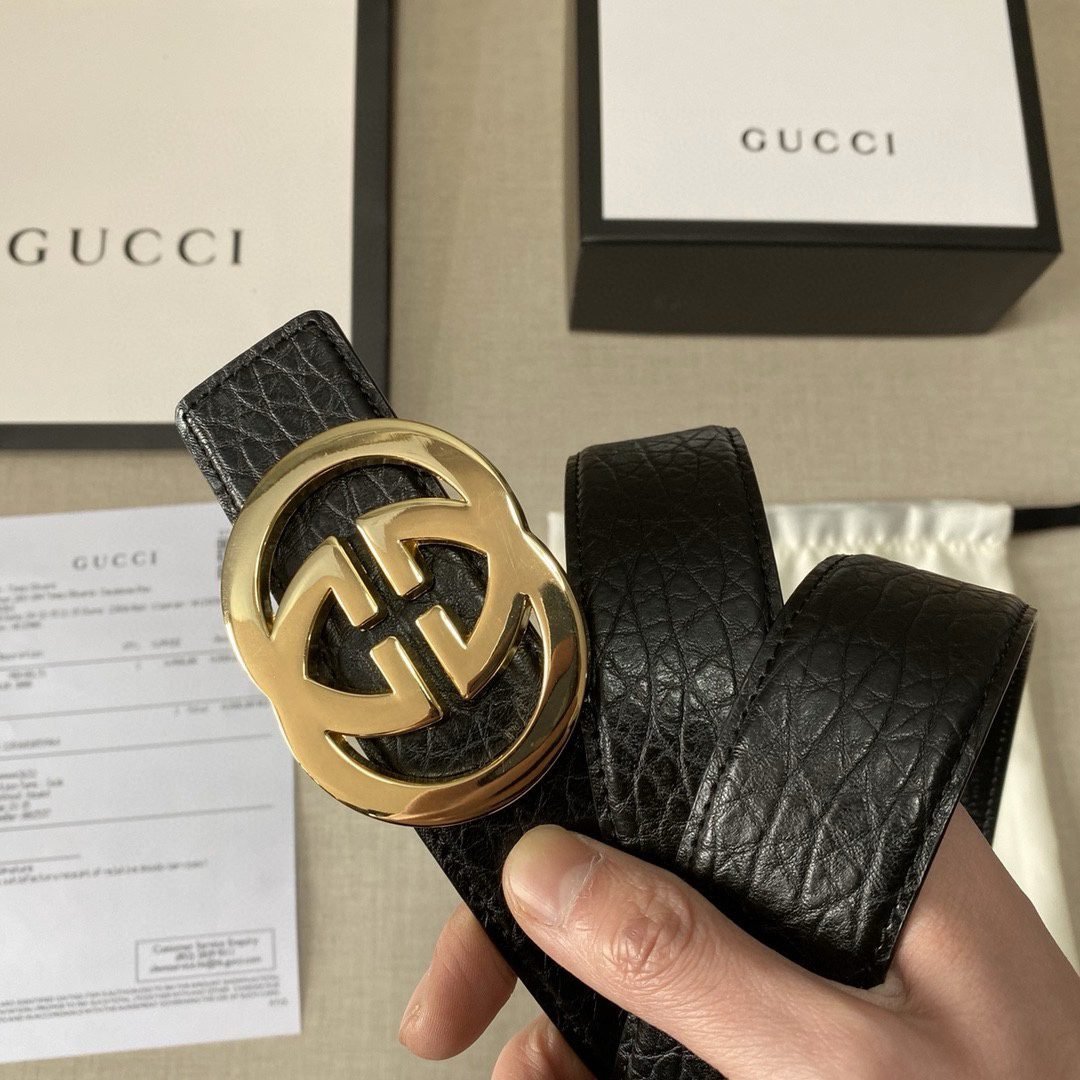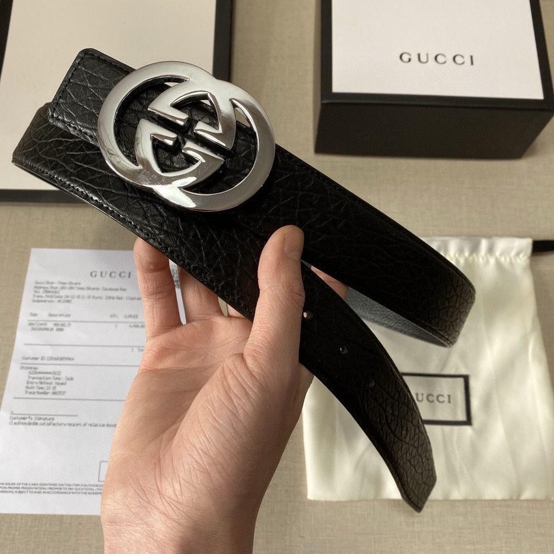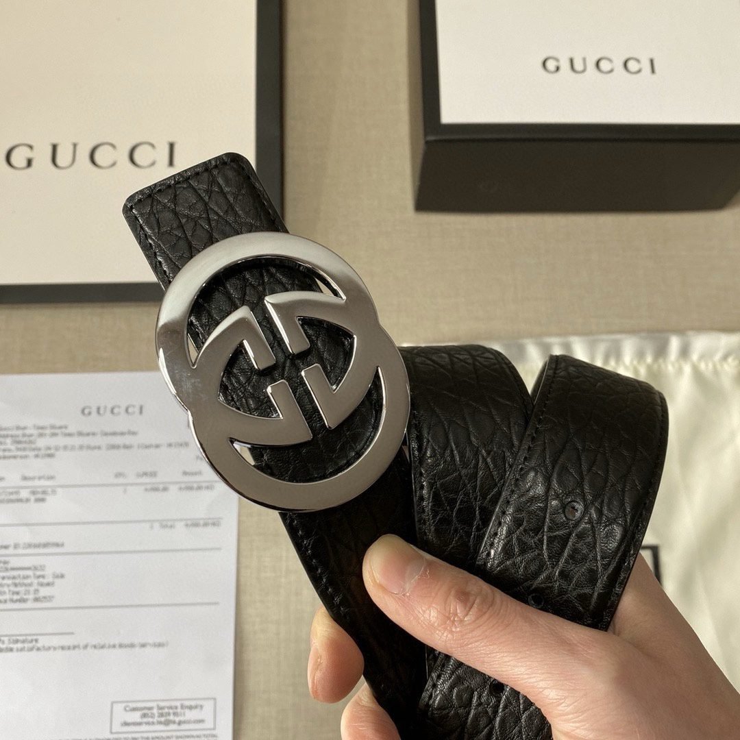 Gucci classic double buckle black leather belt, simple and elegant, luxurious and exquisite