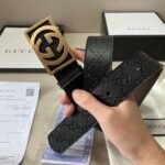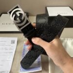 GUCCI double G textured black belt leads the fashion trend with its unique charm. Selected high-quality leather, processed with exquisite craftsmanship, the belt surface presents a delicate texture, soft and comfortable to the touch. The double G logo buckle is made of high-grade alloy material, finely polished and polished, shining with luster, showing nobility and luxury. The belt buckle is cleverly designed and can be easily adjusted according to the waist circumference to ensure comfort and convenience of wearing.