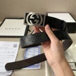 2.Do not contact with sharp objects to avoid scratching the surface of the belt or the gold double G logo buckle.