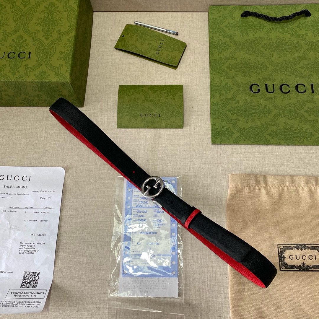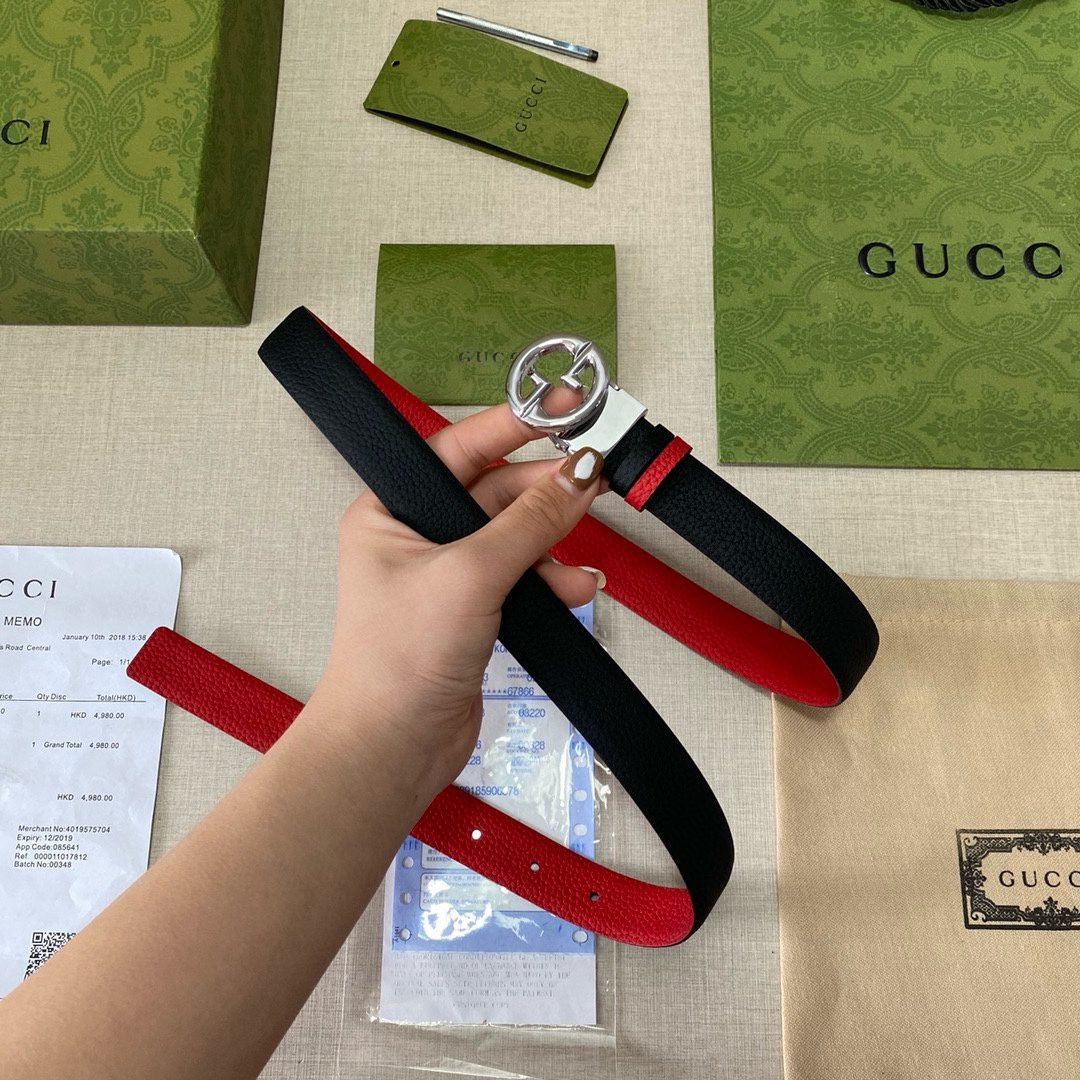Home Belt GUCCI Belt Gucci fashionable red and black color matching silver buckle belt with soft touch, elasticity and exquisite oil edges