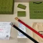 Gucci fashionable red and black color matching gold buckle belt, soft to the touch, exquisite oil edges $210.00 Original price was: $210.00.$66.69Current price is: $66.69.