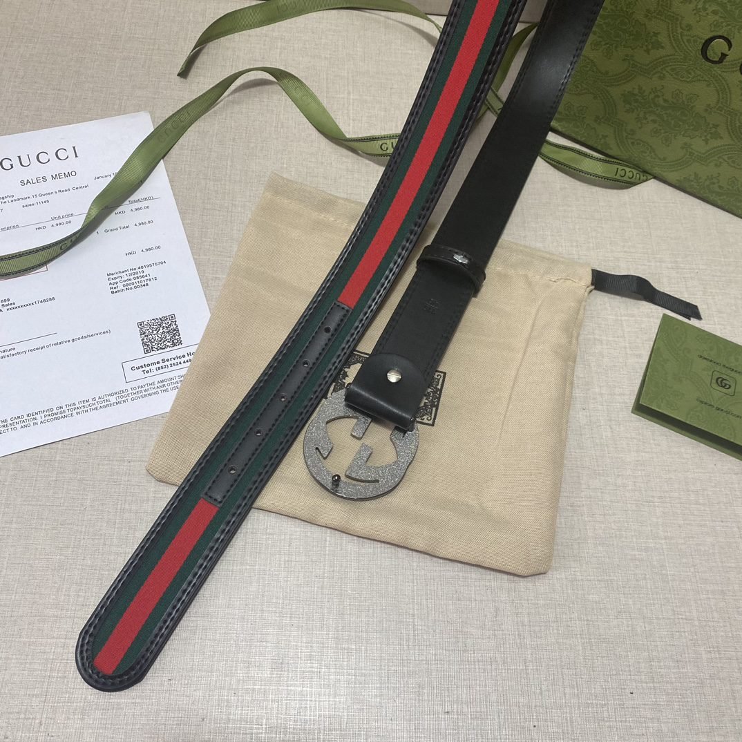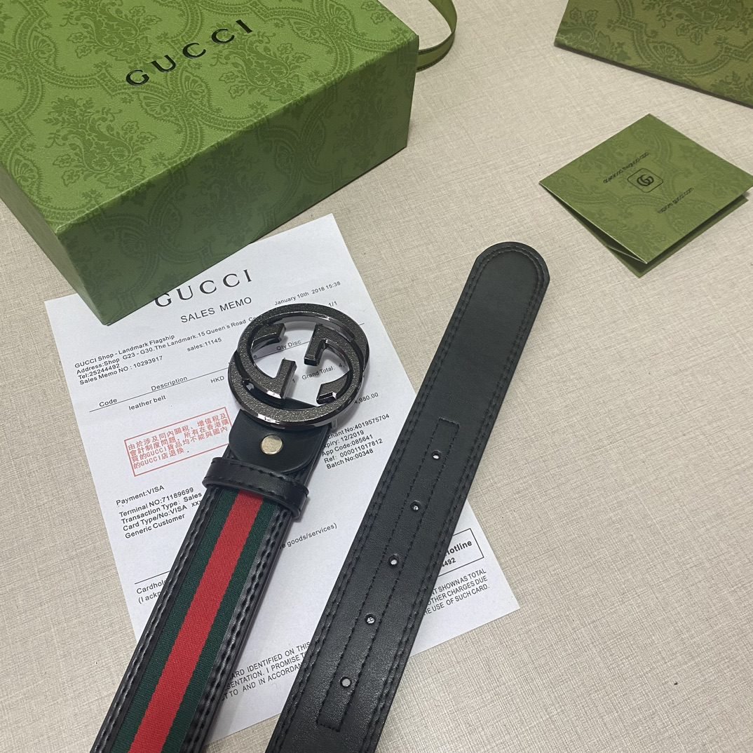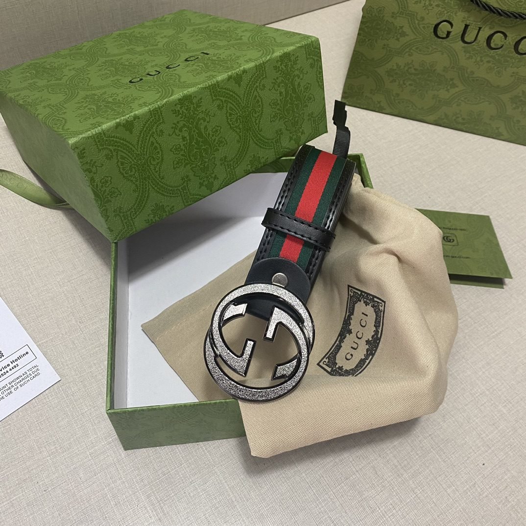 This Gucci fashionable three-color striped black buckle belt has become the focus of the fashion world with its unique three-color striped design. The classic combination of red, green and black not only highlights the brand’s vitality and passion, but also reveals a low-key luxury. The belt is made of high-quality leather, which is soft and comfortable to the touch, wear-resistant and durable. The black double G buckle serves as the brand’s logo, highlighting the wearer’s taste and identity.