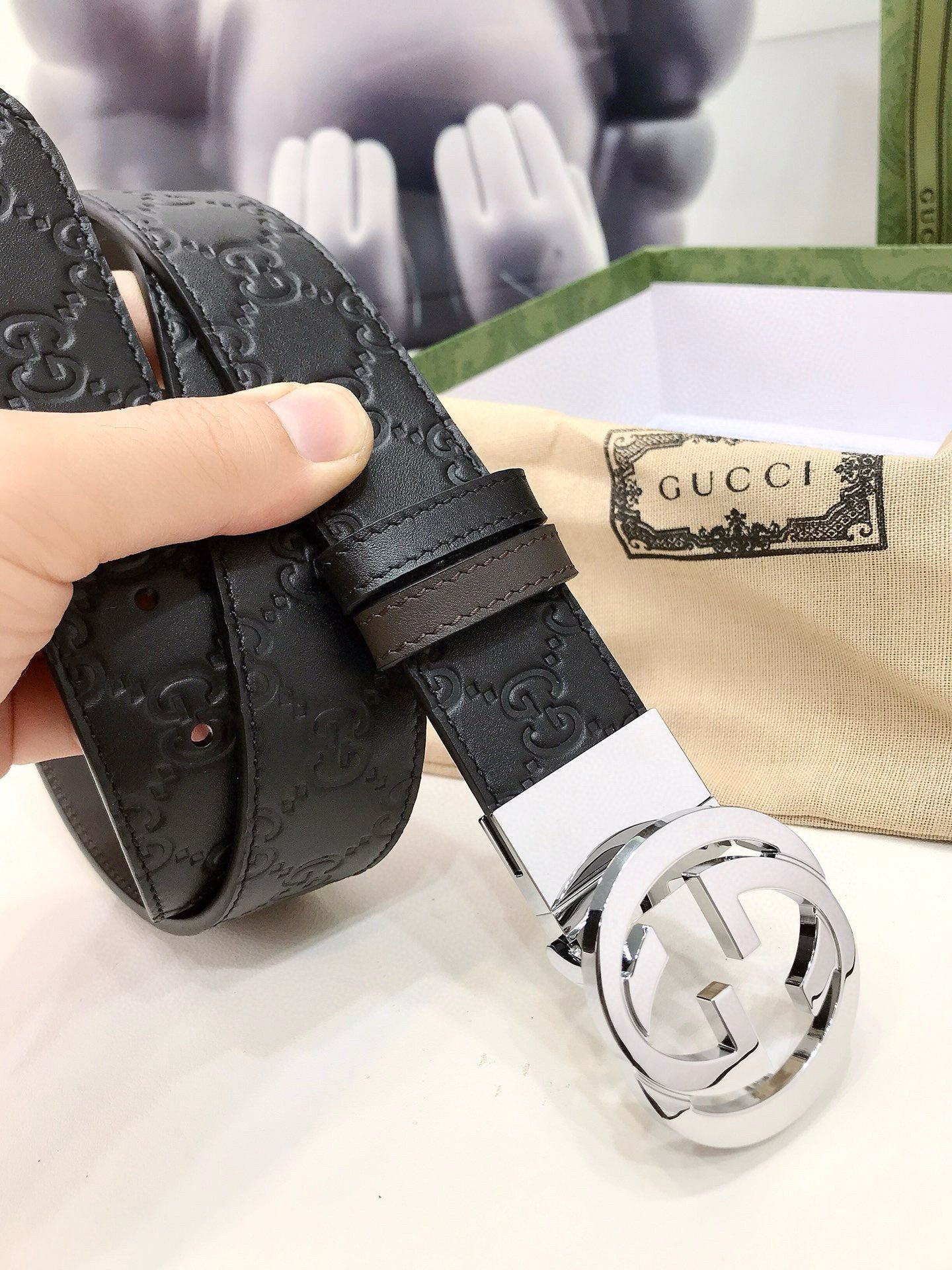 This Gucci G-buckle black belt is a must-have item for men’s daily wear. Whether it is paired with formal attire for business occasions or paired with casual attire for daily activities, it can easily enhance the fashion sense of the overall look. Whether you are a business elite or a fashion expert, this belt can be the best choice for you to show your personality