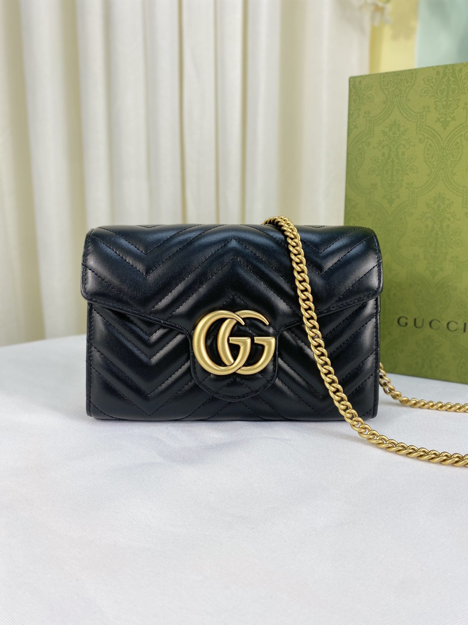 Model: 474575g color original leather. The gg marmont Mini chain bag ???? comes in a structured soft shape with a gg metal fitting on the clamshell and gg logo on the back. It is made of quilted human-like leather. Dimensions: 20cm (W) x 13cm (H) x 6cm (D)