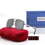 This pair of sunglasses features a unique design that combines square and rounded corners, showcasing the brand’s consistent delicacy and delicacy, while also exuding a soft yet resilient aesthetic. The classic double G logo of GUCCI is cleverly embedded on the frame, highlighting the brand’s nobility and uniqueness. The frame is made of high-quality metal material, which is lightweight and sturdy, comfortable to wear, and durable. Suitable for various occasions, whether for leisure vacation or business travel, it can showcase your unique taste.