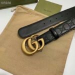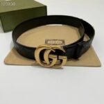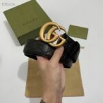 This Gucci gold double G black texture belt is made of top-grade black leather material, with a delicate touch and extraordinary texture. The golden double G buckle on the belt not only shines with nobility, but also represents the brand’s unique charm and extraordinary quality. Every detail has been carefully polished, showing an unparalleled sense of luxury.