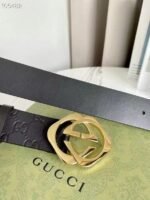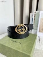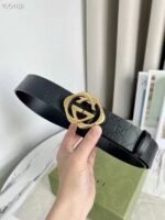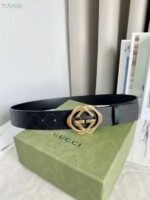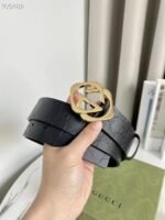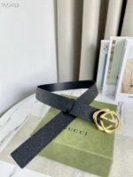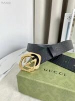 Gucci gold double G buckle black belt, with its exquisite design and excellent quality, has become a leader in fashion accessories. The black leather material is selected and finely polished to show a deep and elegant luster, revealing extraordinary taste. The belt buckle head adopts a unique double G design, which is based on gold and shines with a low-key and luxurious light, highlighting the nobility and uniqueness of the brand.
