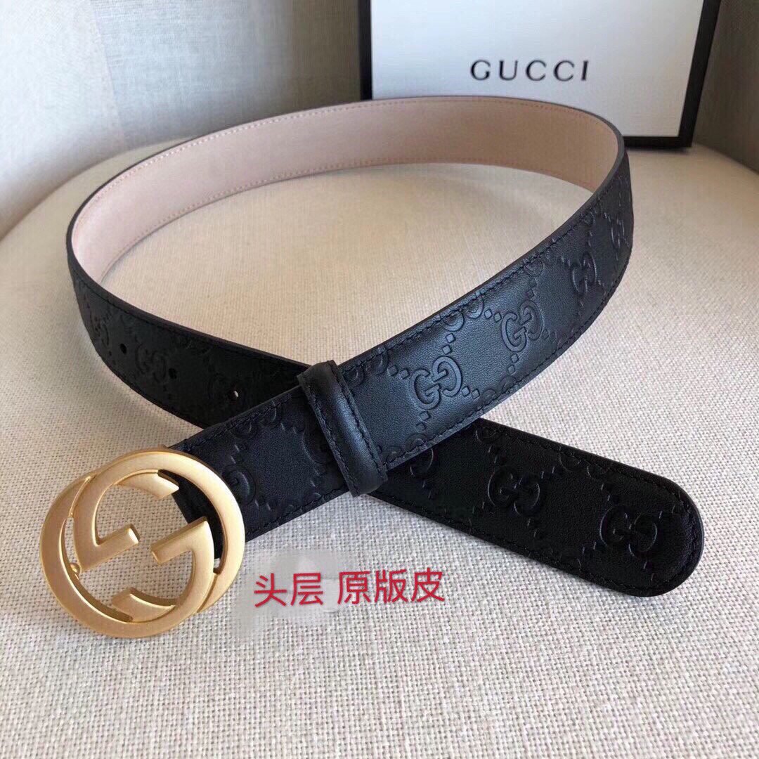 Gucci’s black leather belt with golden double G buckle is made of top-grade cowhide. The leather is soft, delicate and comfortable to the touch. The surface of the belt has been carefully polished to give it a unique luster, highlighting the brand’s noble quality. The belt buckle is inlaid with the iconic GG pattern, presented in gold, which looks fashionable yet classic.