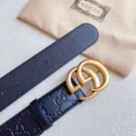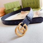 Gucci gold double G buckle black textured belt, showing low-key and luxurious taste. The belt is made of top-grade leather material, which is soft and delicate to the touch and durable. The golden double G buckle design is exquisite, elegant and shining, perfectly integrating the brand’s classic elements with modern fashion sense.