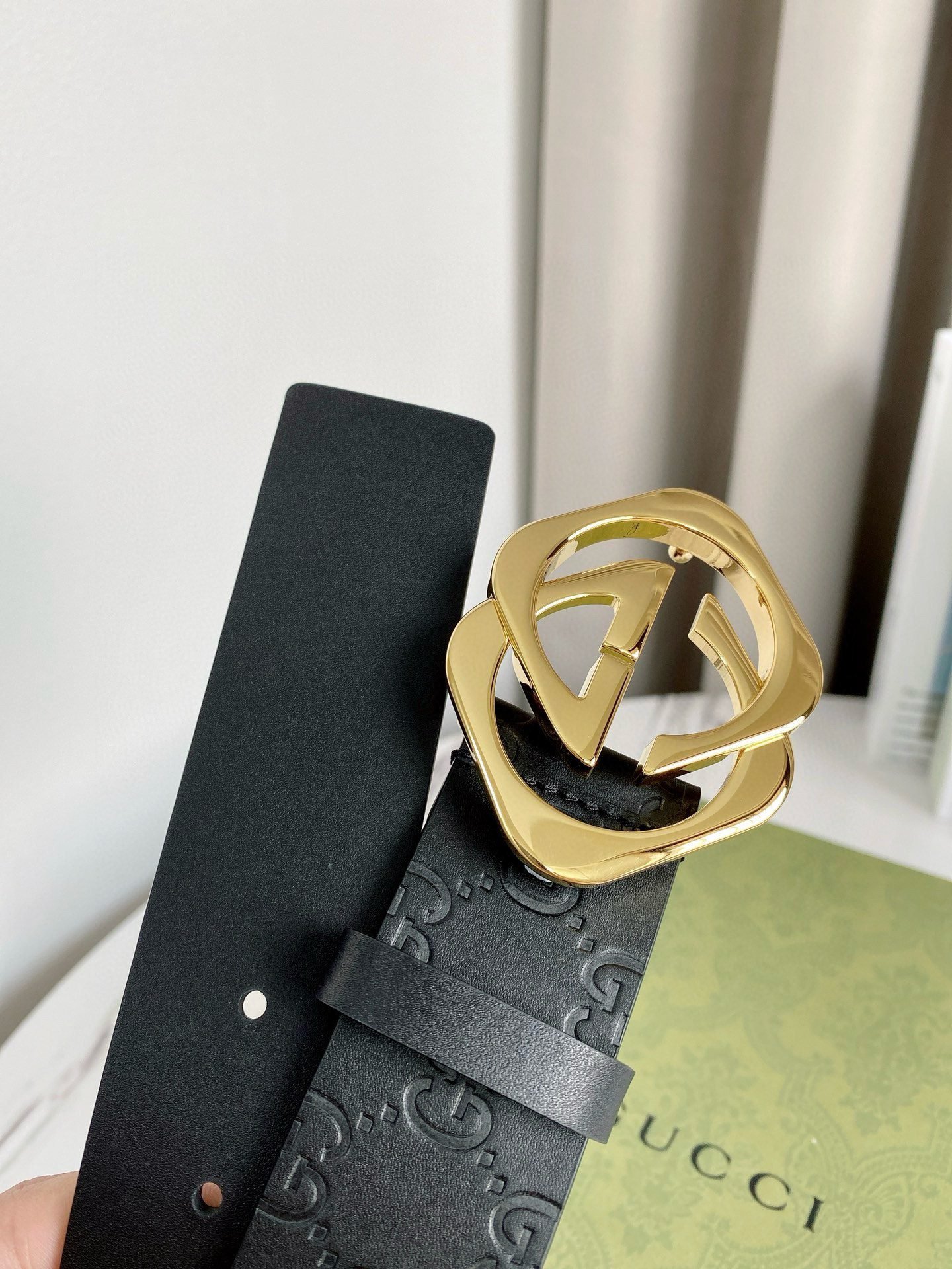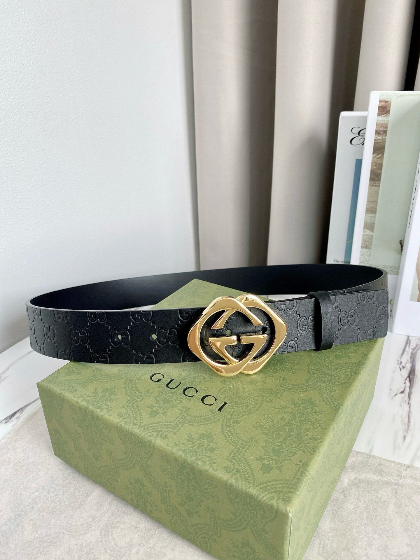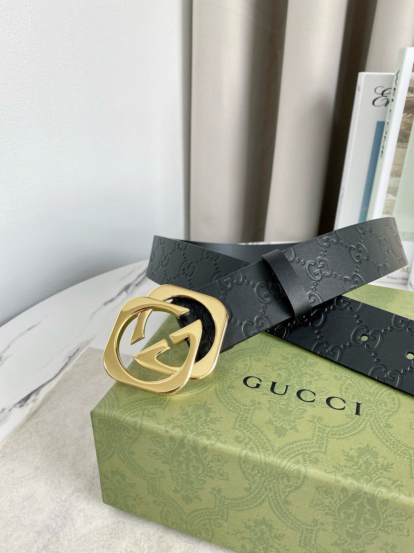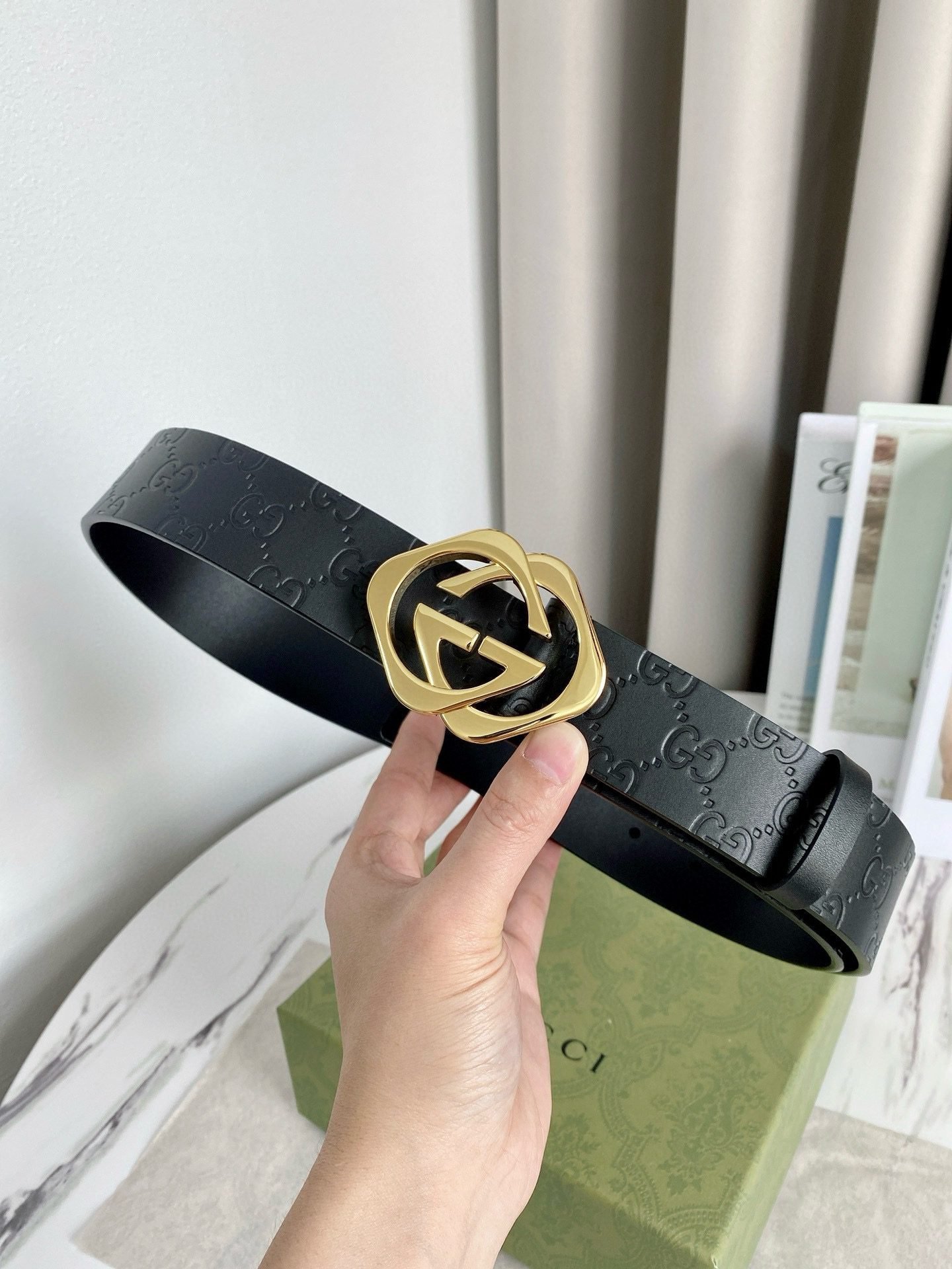 This Gucci double G logo fashionable men’s belt, with its unique double G logo buckle design, highlights the brand’s unparalleled charm. The belt is made of high-quality leather, which is soft and delicate to the touch, while also having excellent durability. The golden double G logo on the buckle adopts a fine polishing process, which is shining and highlights the wearer’s unique taste and identity.