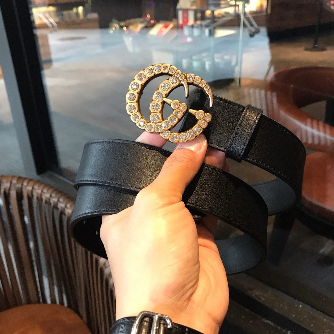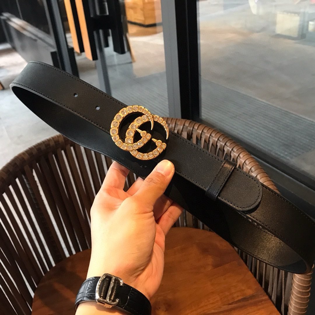 Home Belt GUCCI Belt Gucci gold G buckle black fashion belt, simple and elegant, fashionable and high-end