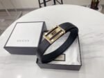 Home Belt GUCCI Belt Gucci high-end square buckle black striped belt, simple and elegant, elegant and luxurious