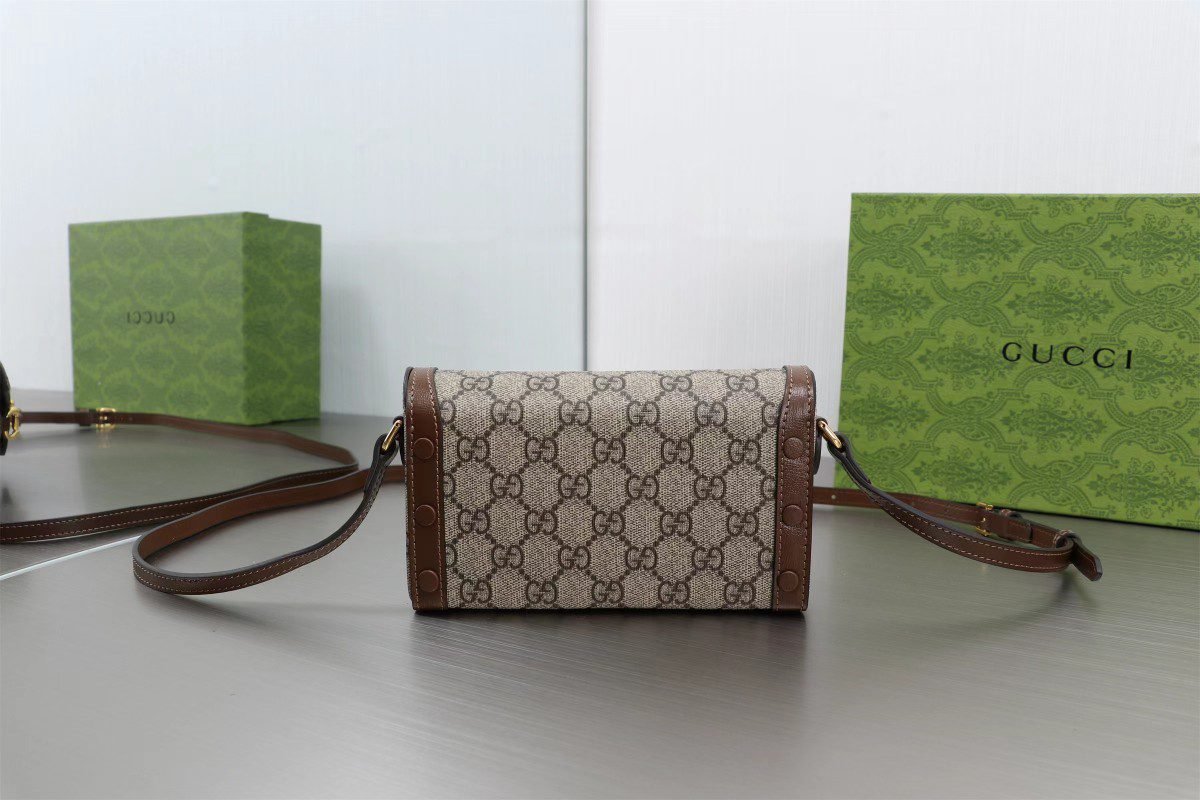 This handbag is a masterpiece of the Horse Snap 1955 collection, and the miniature shape makes the iconic accessories of the collection even more eye-catching. The material ✨ is made of counter texture pvc material with imported cowhide, and polished with genuine open-plate hardware Model: 699296 Size: 18x12x5cm