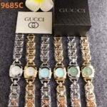 This Gucci watch collection features the iconic horsebit chain design, distinctive square cases, and a range of vibrant dial hues. Crafted with Gucci’s signature blend of heritage and contemporary style, these watches merge bold hardware details with refined aesthetics. Perfect for those seeking a timepiece that embodies distinctive design and luxury craftsmanship, each watch is a testament to Gucci’s legacy of innovative fashion and timeless elegance.