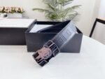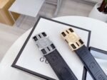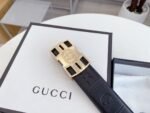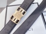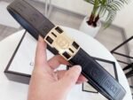 Gucci’s interlocking black textured belt has become a must-have accessory for fashionable men with its unique design and excellent quality. The belt is made of top-grade black leather, which is delicate and soft to the touch and tough in texture, combining durability and fashion. The metal buckle is made with exquisite craftsmanship, and the shield-shaped badge is engraved with the word “GUCCI”, highlighting the brand’s nobility and luxury.