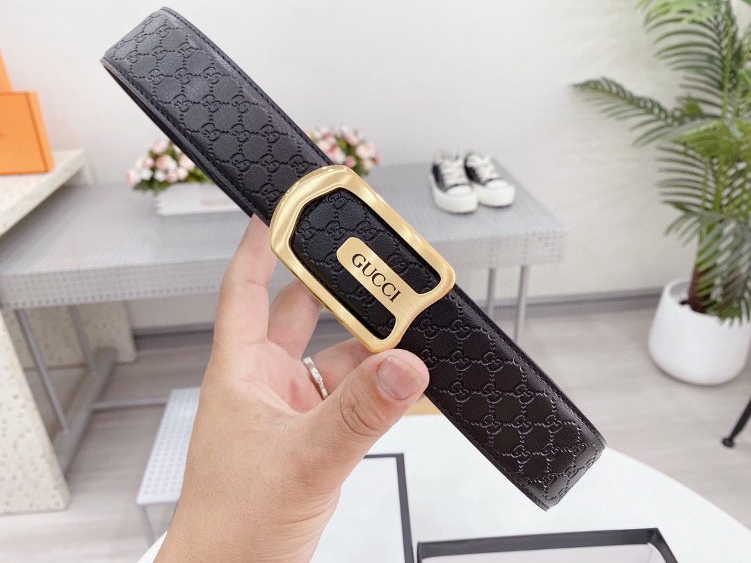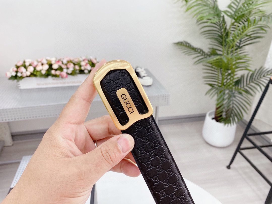 Home Belt GUCCI Belt Gucci Luxury black “G” pattern belt with gold buckle, a perfect combination of classic and fashion