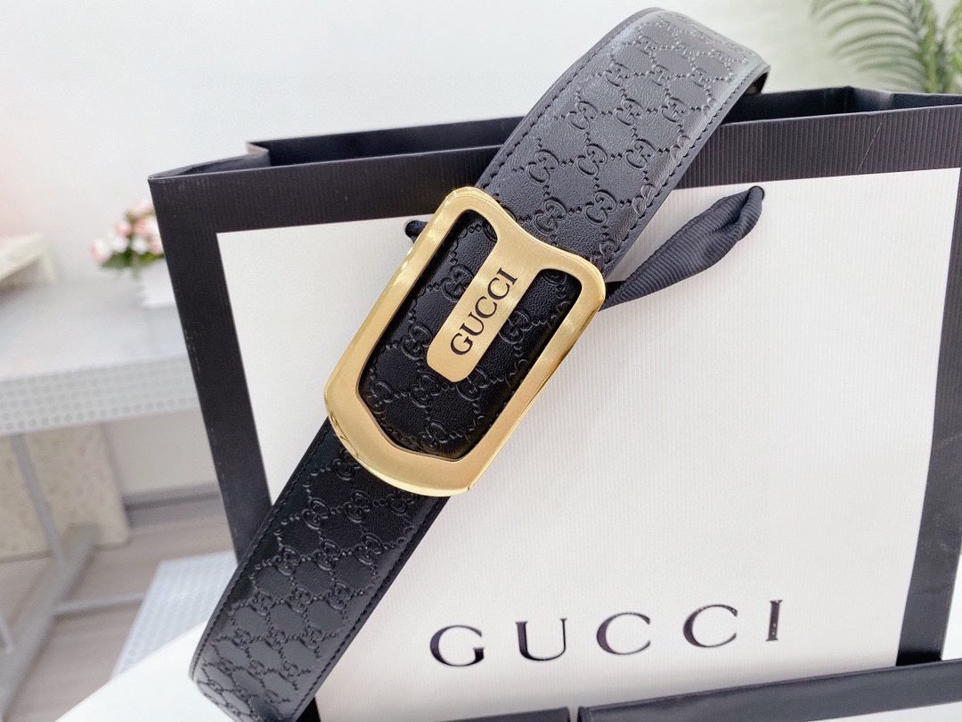 This Gucci luxury black “G” pattern belt is a perfect combination of classic and fashion. Selected high-quality black leather, after exquisite craftsmanship, presents a delicate and soft touch and luster. The golden ring buckle is dazzling and highlights the unique charm of the brand. The unique texture design makes the belt more layered and fashionable, becoming the finishing touch of your overall look.
