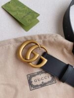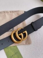 Gucci luxury gold buckle genuine leather belt perfectly combines elegance and luxury. Selected top-grade leather material, finely polished, the surface of the belt presents a delicate and shiny texture, soft to the touch and elastic. The belt buckle is made of exquisite gold metal, and the double G logo is clear and eye-catching, highlighting the brand’s unique charm.