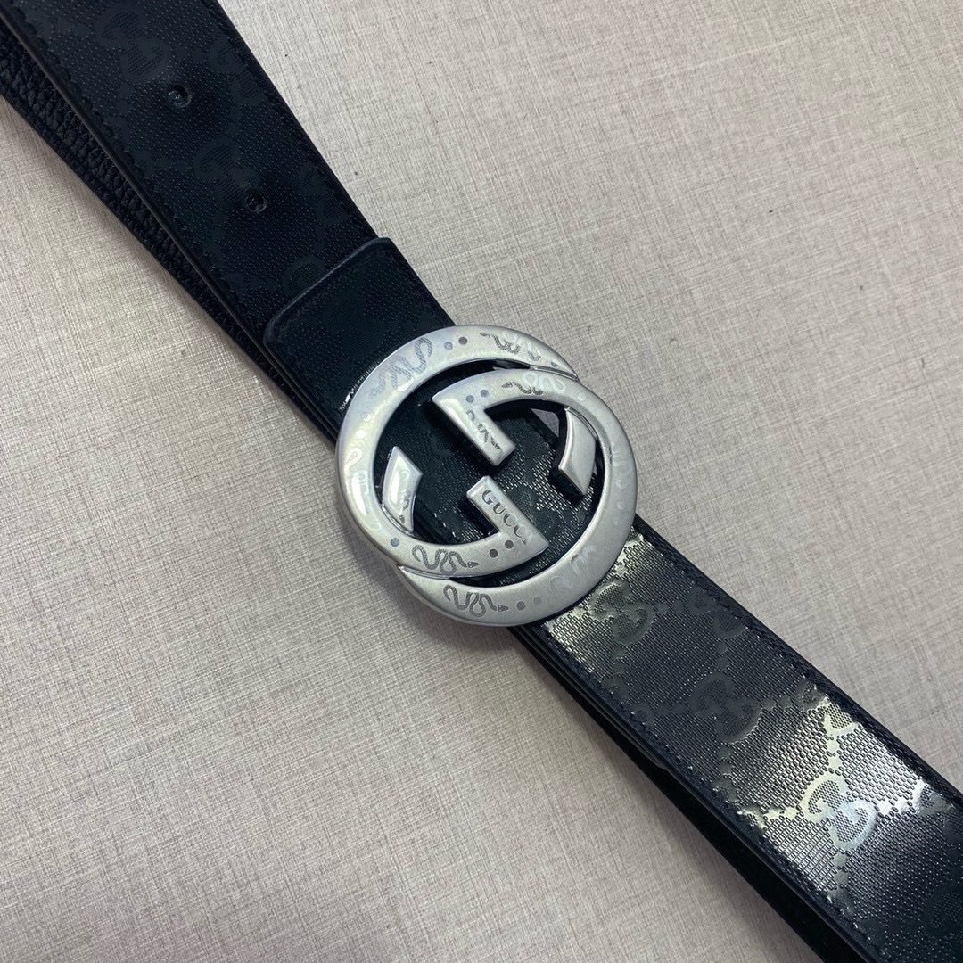This Gucci classic black textured silver and black G buckle belt is a perfect combination of fashion and quality. The black belt has been carefully textured, making the overall shape more unique and adding a sense of low-key luxury. The silver and black G buckle on the belt is the finishing touch, which not only shows the unique charm of the Gucci brand, but also highlights the personality and taste of the wearer.