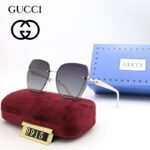 The lenses present a charming luster, adding a touch of mystery and charm to the wearer. The square frame has smooth lines, simple yet elegant, showcasing GUCCI’s consistent fashion taste. The metal decoration on the frame adds a touch of highlights to this sunglasses, making it stand out among many fashionable items. This pair of sunglasses is carefully placed on a red velvet cushion, which is soft and comfortable, protecting the glasses from damage and making them suitable for various occasions, whether for leisure vacation or business travel, showcasing your unique taste.