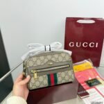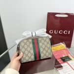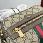 This GUCCI Ophidia mini crossbody bag showcases the brand’s iconic GG monogram print, complemented by the signature green-red-green Web stripe and polished gold-tone hardware, with a compact size of 18cm. Embodying GUCCI’s heritage of luxury and retro-inspired design, it features an adjustable crossbody strap for versatile wear. Perfect for those who appreciate iconic branding, timeless details, and petite elegance, this bag makes a sophisticated statement suitable for daily outings or as a chic accessory.
