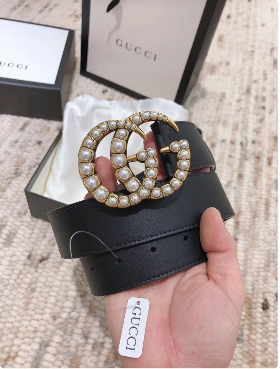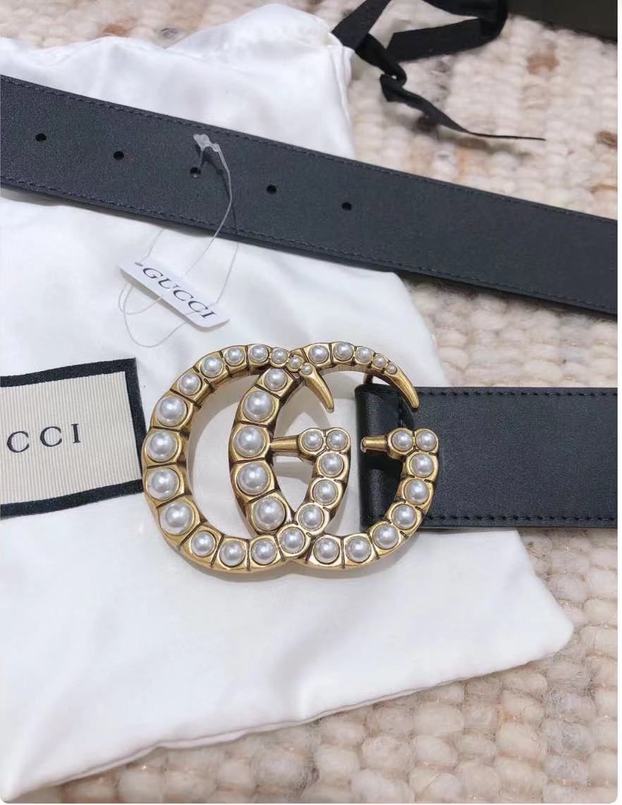 This pearl-studded double G leather belt is suitable for a variety of occasions, whether formal or casual, it can perfectly match your look. Wear it with a suit to attend a business meeting or dinner, showing your maturity and noble temperament; wear it with casual pants to enjoy the weekend, showing your fashion taste and vitality. No matter when and where, this belt can add a unique charm to your overall look.