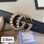 Gucci pearl metal double G black belt, simple and elegant, noble and luxurious