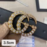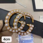 Gucci’s pearl gold double G black men’s belt incorporates the brand’s iconic double G design and is presented with an exquisite gold metal buckle, showing nobility and extraordinary. The buckle is inlaid with white pearls of even size, like stars, which not only reflects the luxury of the belt, but also adds a touch of romance to it. The belt is made of high-quality leather, soft, comfortable and durable, making it a great choice to show your taste